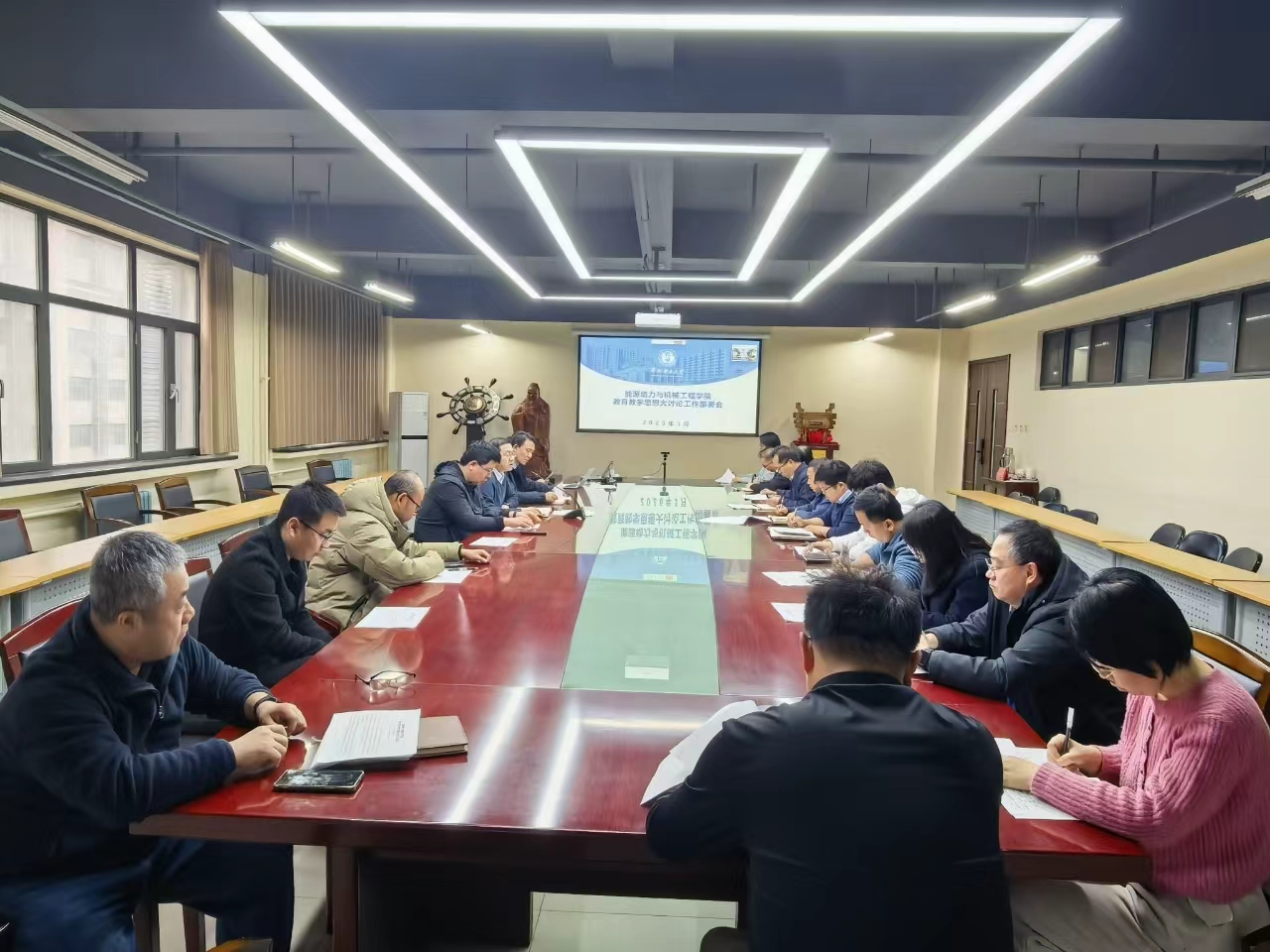 3月13日上午,能源动力与机械工程学院召开新时代教育教学思想大讨论工作部署会,会议以线上线下形式召开,学院领导班子、各教研室主任、研究所所长和专业负责人线下参会,其他教职工线上同步参会。学院党委书记肖万里主持会议。